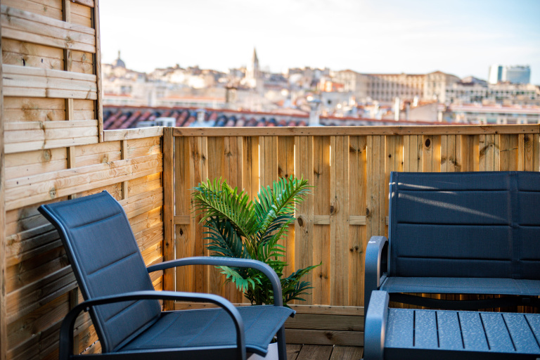 - Rooftop privé de 16m² : véritable extension du lieu, avec une vue imprenable sur l'Intercontinental.